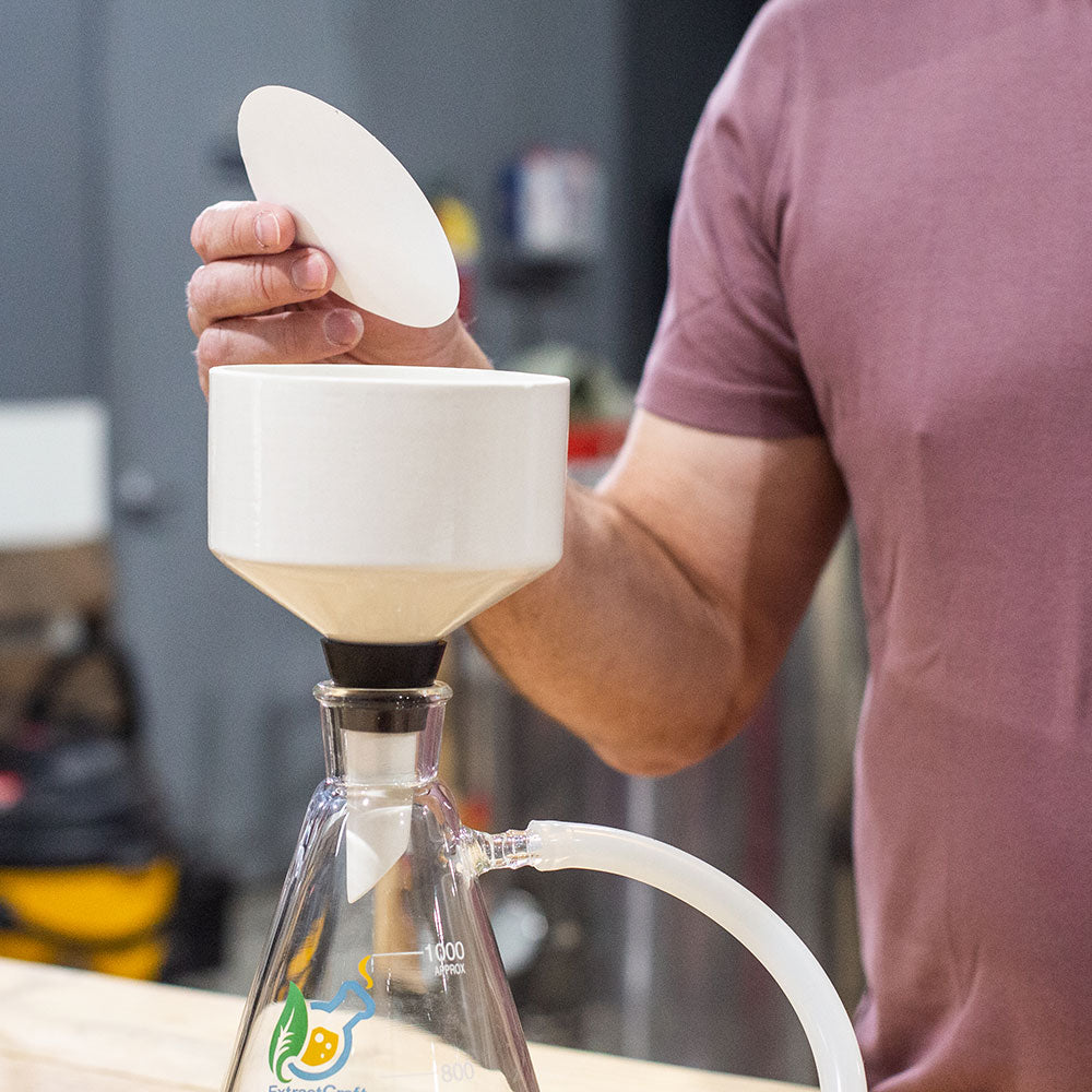 The Buchner funnel and Erlenmeyer flask are used for high-quality, vacuum assisted filtering. The hose adaptor connects to the vacuum port on any Source Turbo as the vacuum source for filtering.